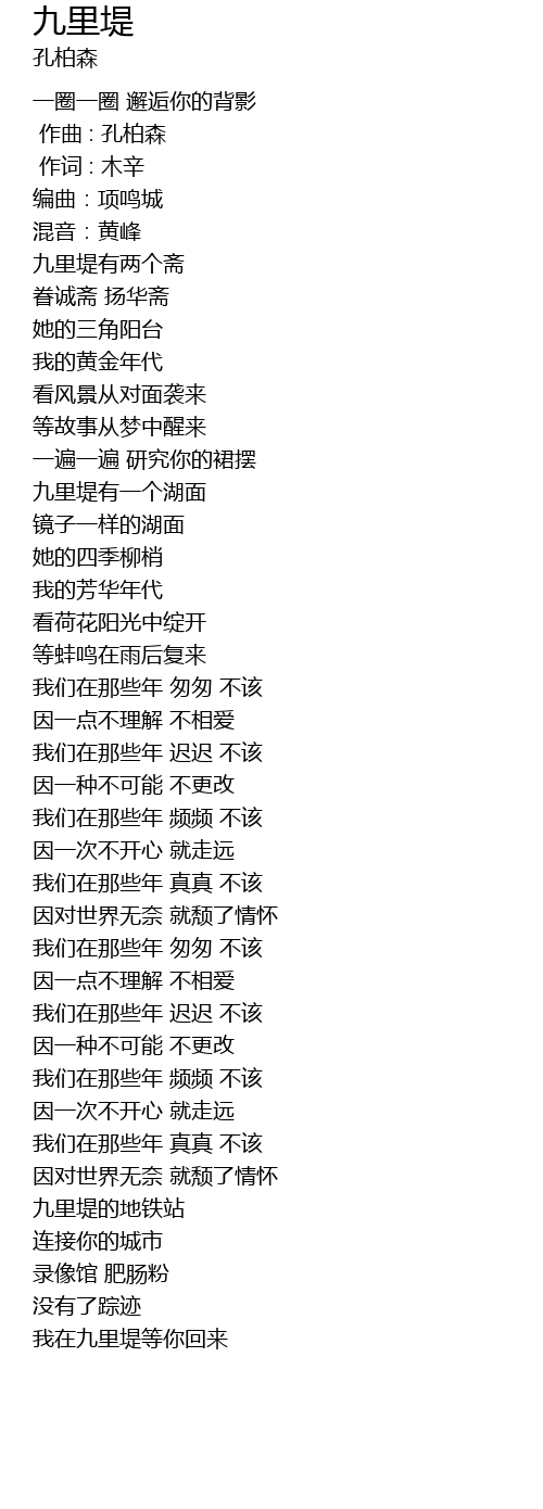| [01:02.000] | jiǔ lǐ dī yǒu yí gè hú miàn |