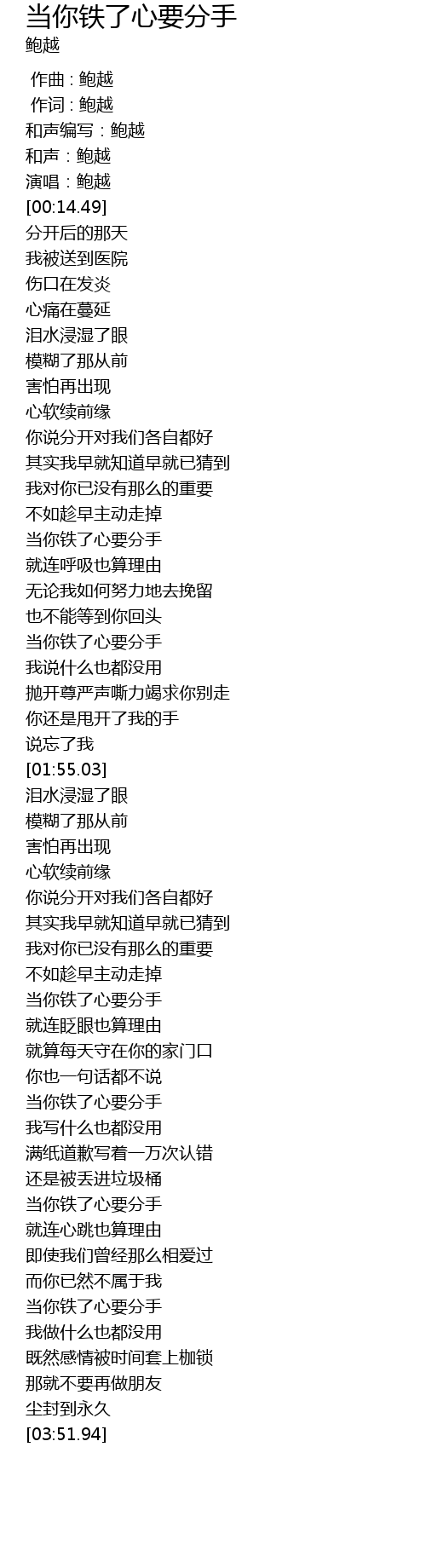 | [03:00.75] | dāng nǐ tiě le xīn yào fēn shǒu |