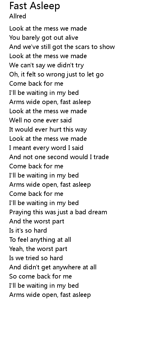 | Arms wide open, fast asleep |