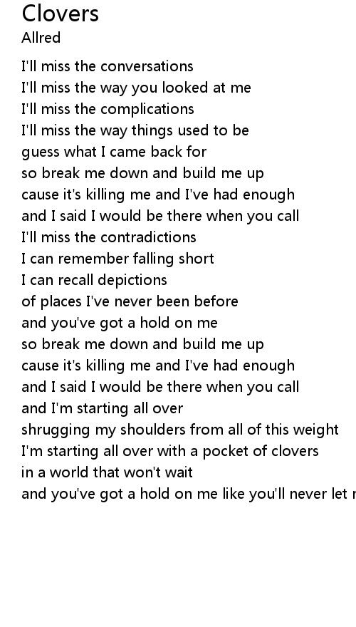 I'm starting all over with a pocket of clovers |