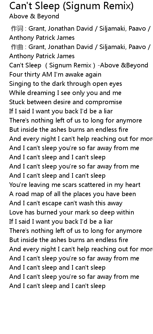 | [00:00.848] | Can't Sleep (Signum Remix)-Above &Beyond |