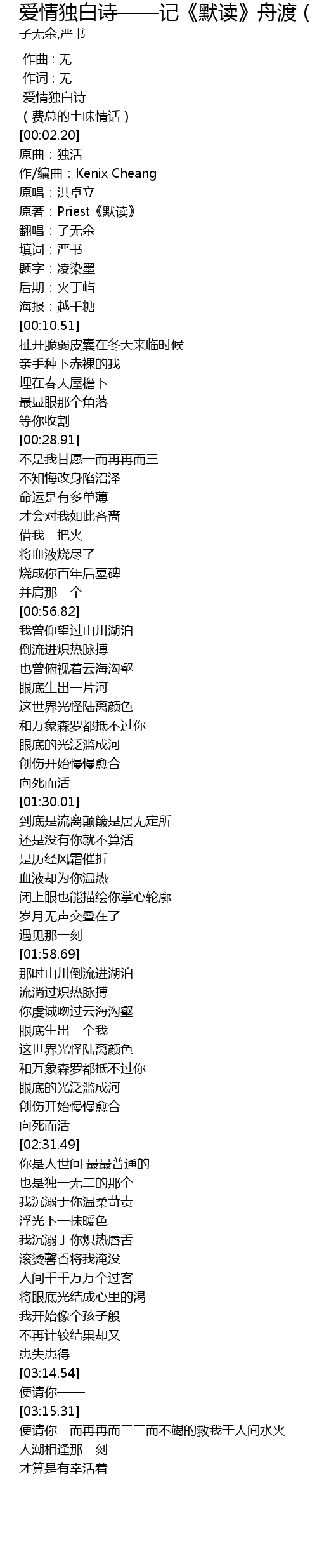 | [00:05.04] | 原著:Priest《默读》 |