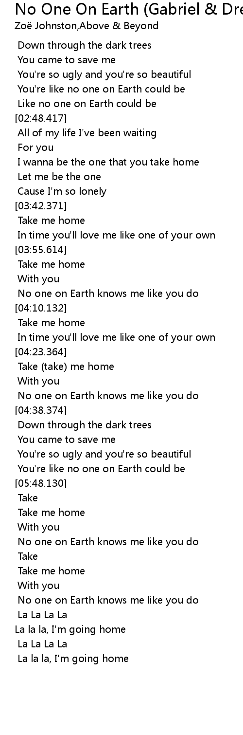 No One On Earth (Gabriel & Dresden Remix) Lyrics