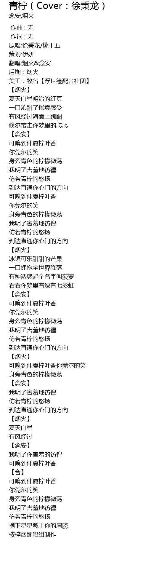 | [01:53.95] | 可嗅到仲夏柠叶香 |