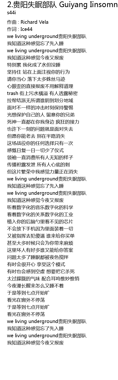 | Song | 2.贵阳失眠部队 Guiyang Iinsomnia Forces (Prod by Richard |