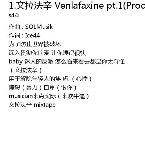 | Song | 1.文拉法辛 Venlafaxine pt.1(Prod by SOLMusik)[Intro] |