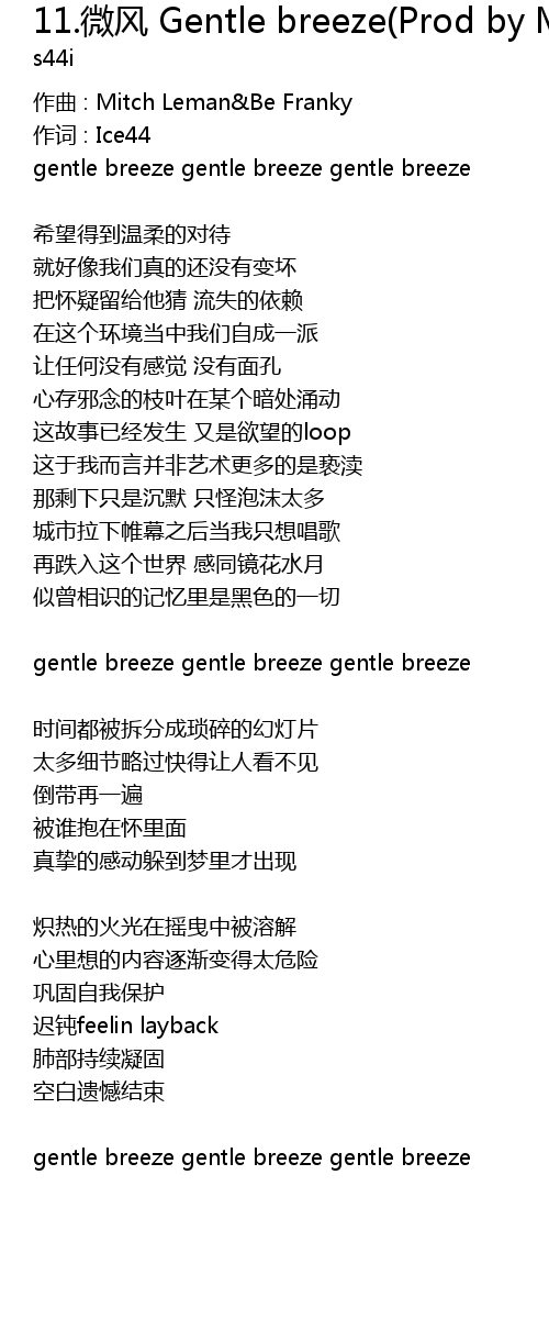 | Song | 11.微风 Gentle breeze(Prod by Mitch Leman&Be Franky) |