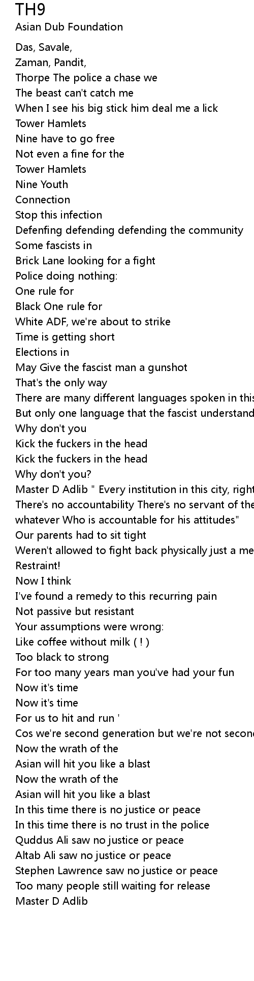 Master D Adlib " Every institution in this city, right is prejudiced against us There's no accountability There's no servant of the Police Force Or his DI or whatever Who is accountable for his attitudes" |