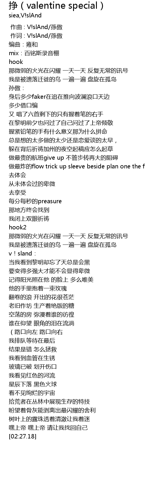 | [00:00.347] | 作词 : V!slAnd/孫傲 |