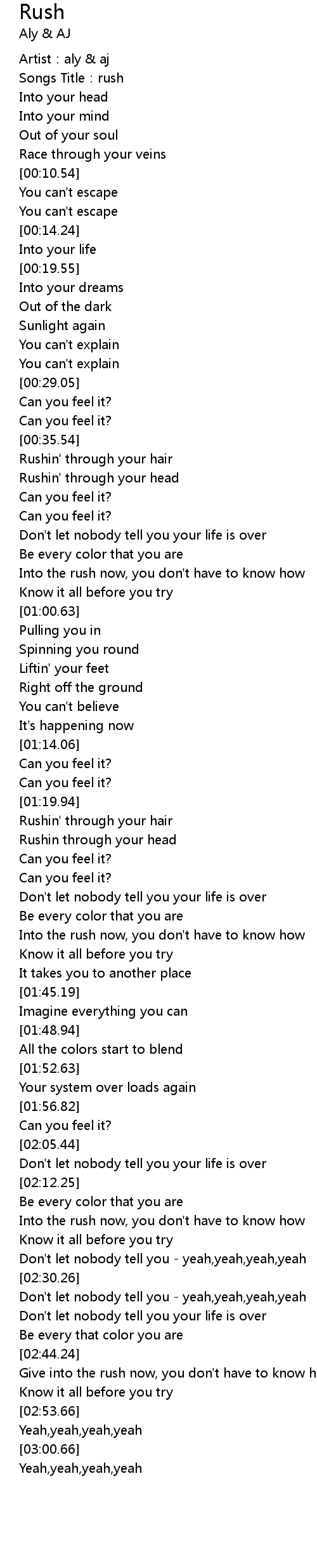 | [01:36.00] | Into the rush now, you don' t have to know how |