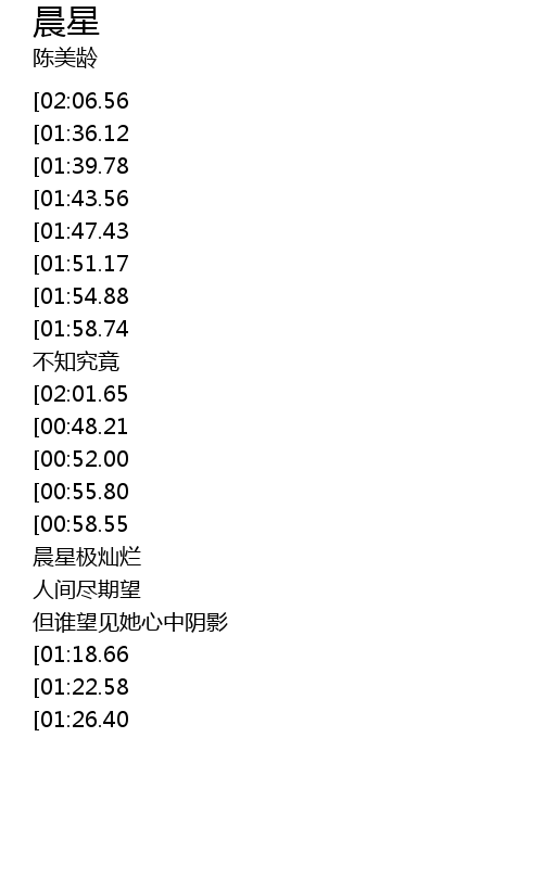 | [02:21.72][01:18.66] | 晨星渐暗淡 |