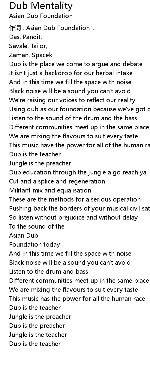 | 作词 : Asian Dub Foundation ... | |