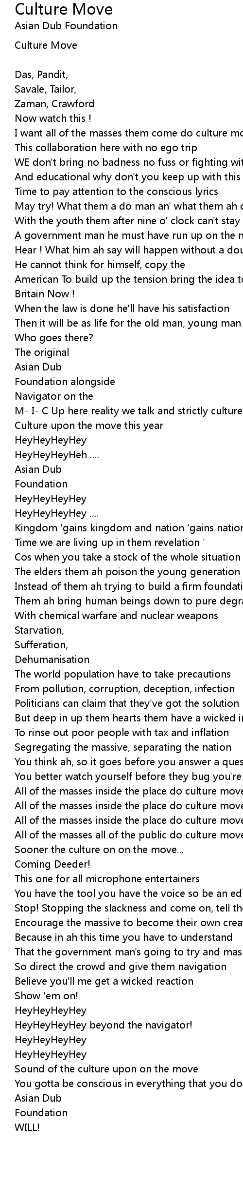 Culture Move Lyrics