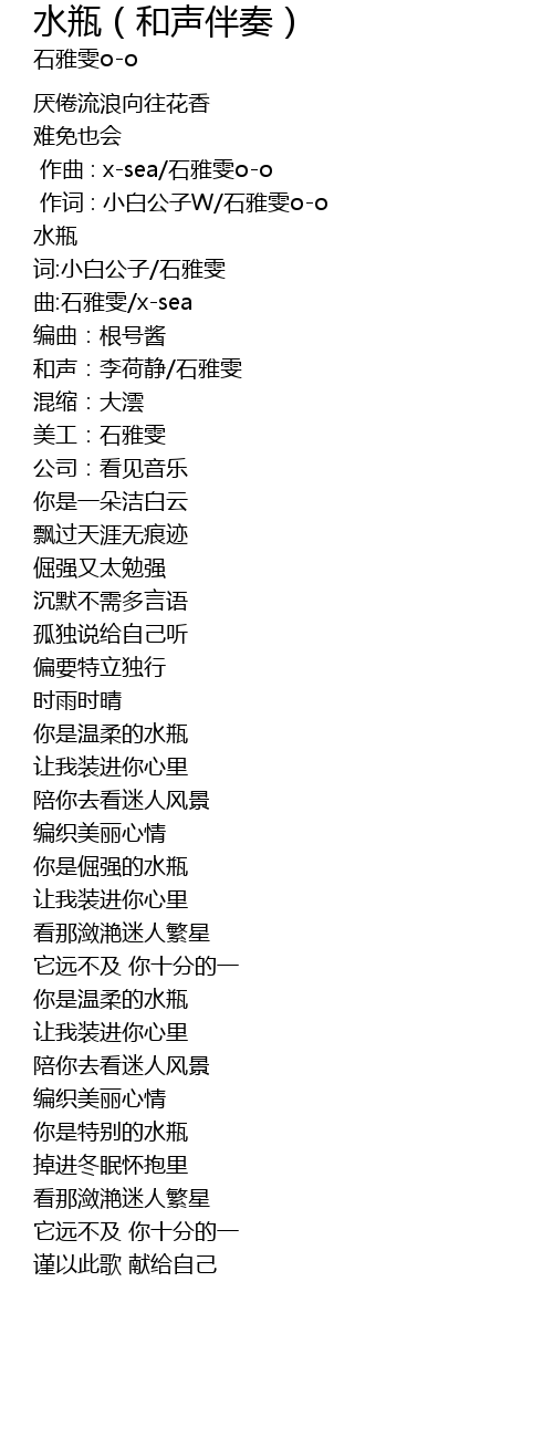 | [00:00.000] | 作曲 : x-sea/石雅雯o-o |