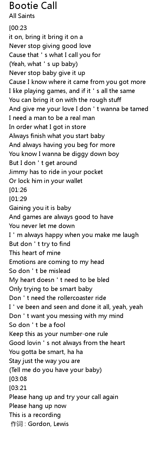 | Song | Bootie Call |