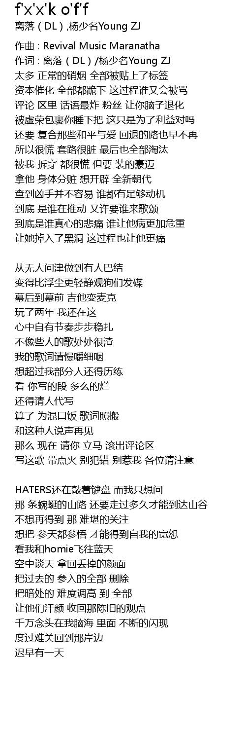 | Album | f'x'x'k o'f'f (prod by 张杰峻) |
