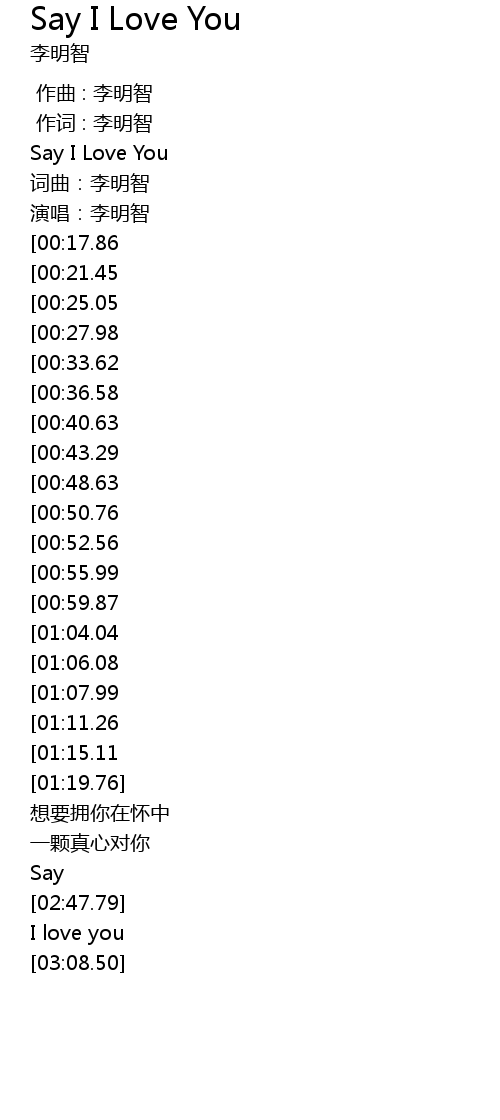 | [02:09.37][00:52.56] | Just want to say I love you |