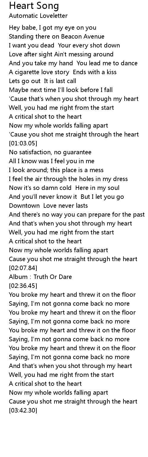 | [02:04.71] | Cause you shot me straight through the heart |