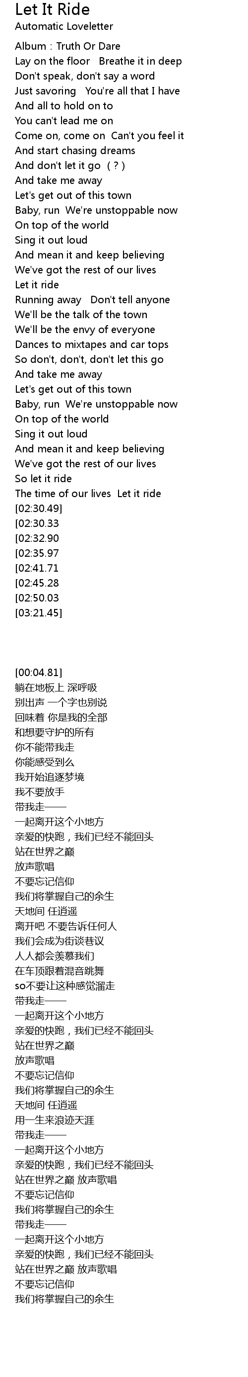 | [01:11.56] | Let it ride |