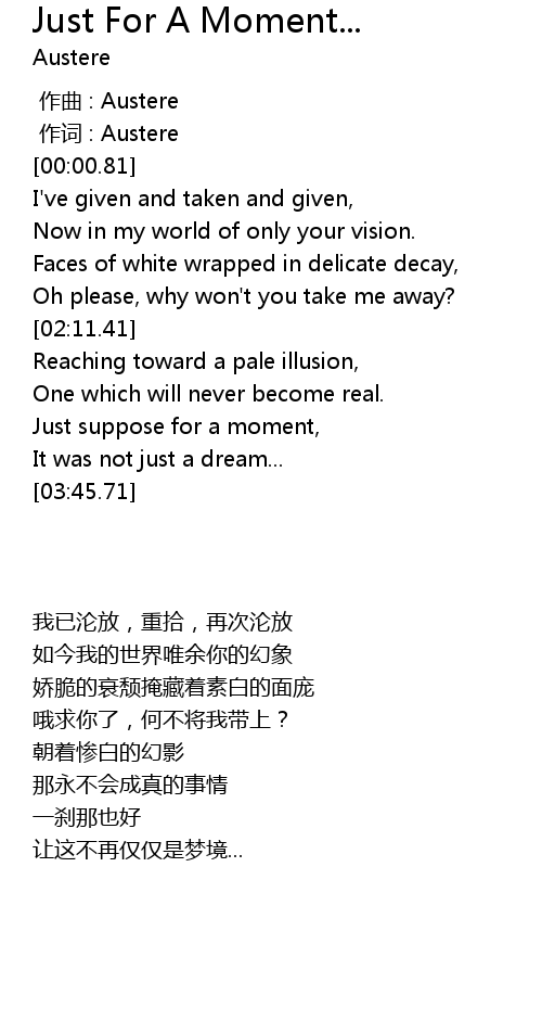 | [00:00.27] | 作词 : Austere |