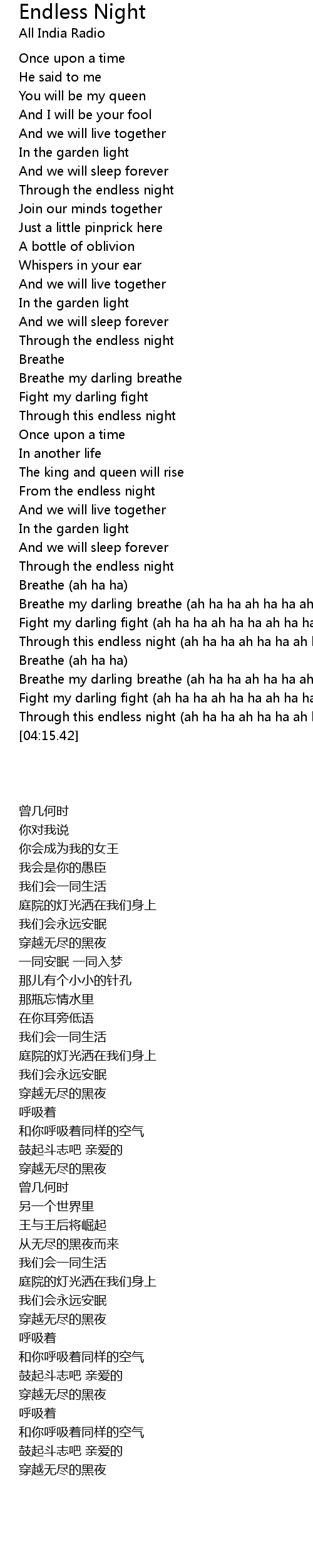 Through this endless night (ah ha ha ah ha ha ah ha ha) |