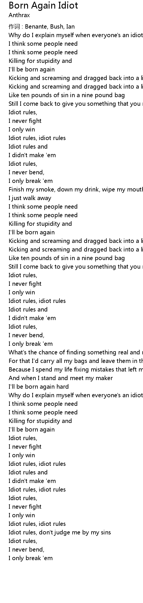 | Why do I explain myself when everyone' s an idiot but me, yeah? | |
