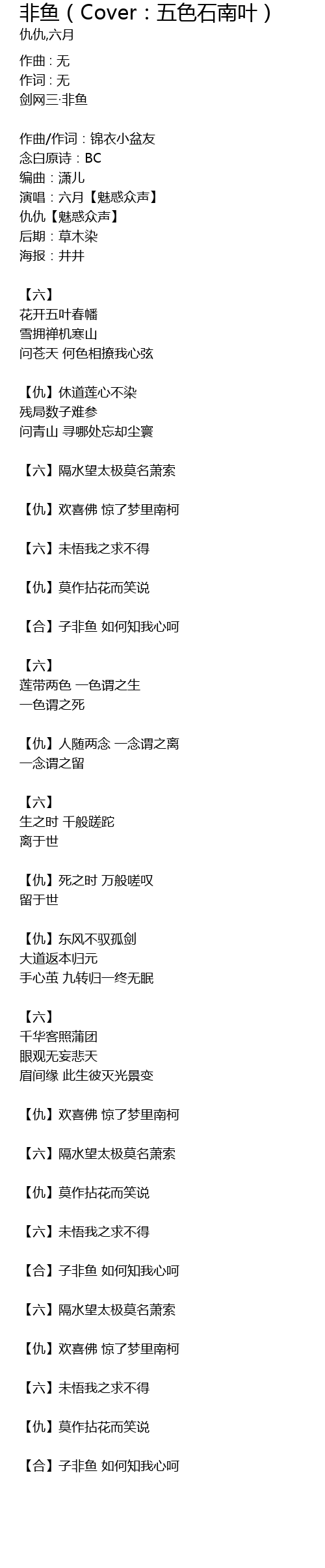 | hé zi fēi yú rú hé zhī wǒ xīn ā | |