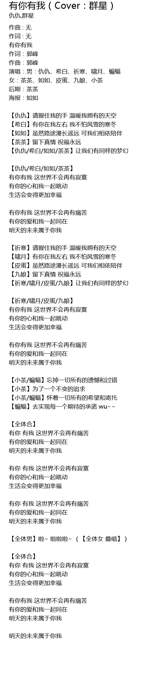 | yǒu nǐ yǒu wǒ zhè shì jiè bú huì zài yǒu tòng kǔ | |