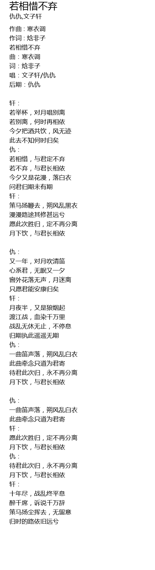 | 唱:文子轩/仇仇 | |