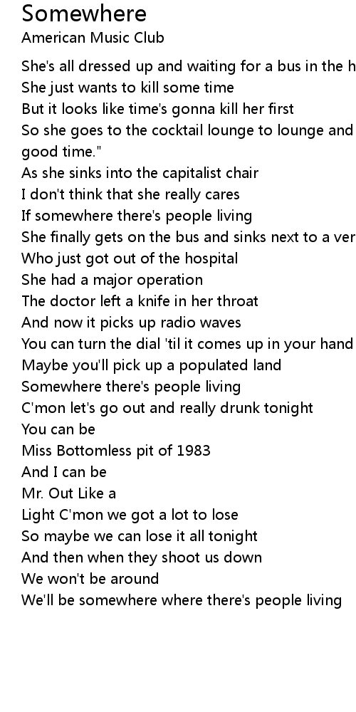 So she goes to the cocktail lounge to lounge and says "I'm gonna have a real good time." |