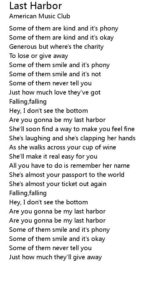 Are you gonna be my last harbor |