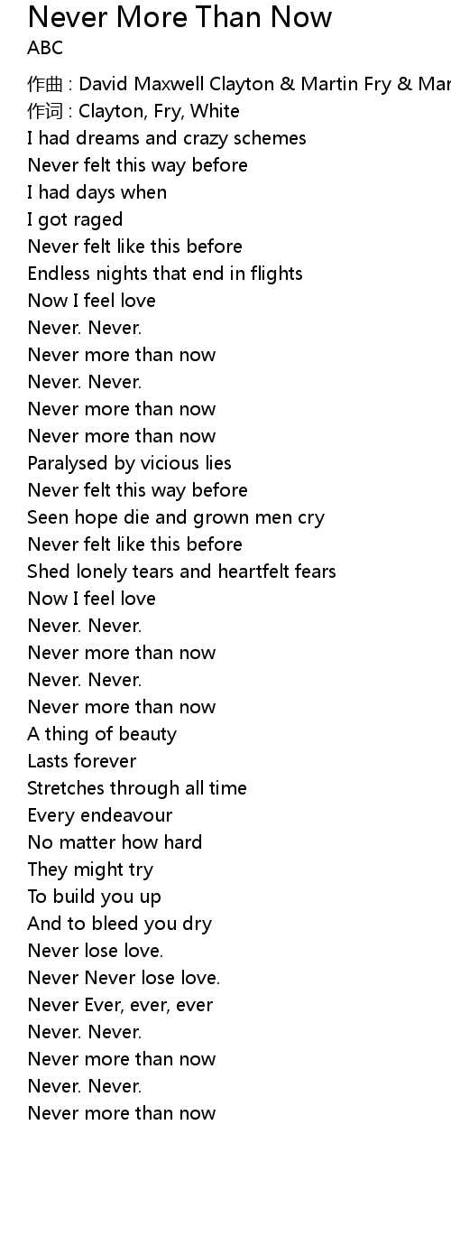 | 作曲 : David Maxwell Clayton & Martin Fry & Mark White | |