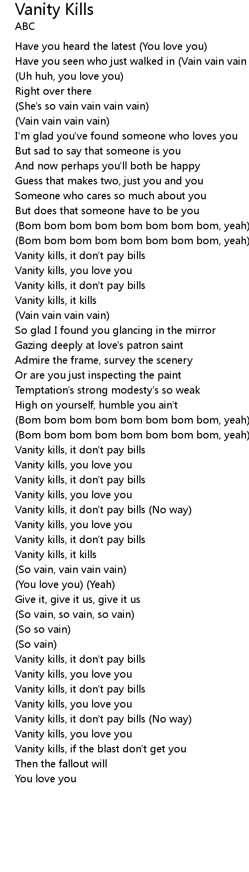 Vanity kills, you love you |