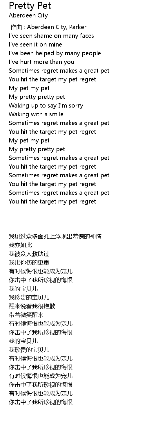 | [02:36.370] | My pet my pet |