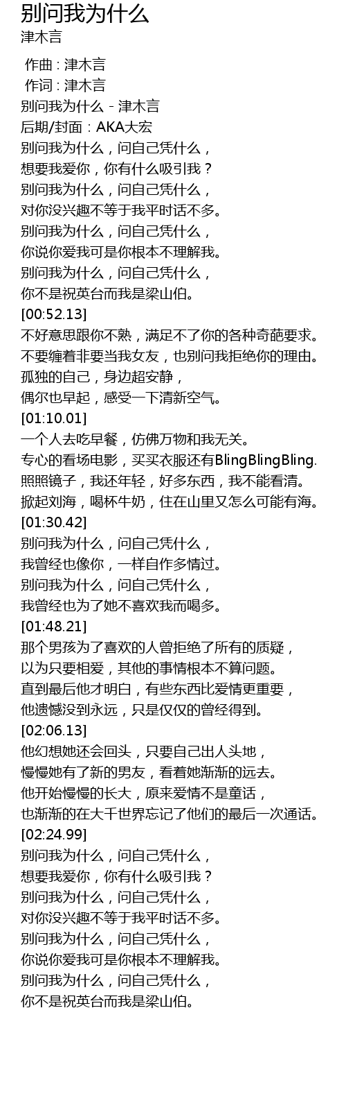 | [00:01.47] | 别问我为什么 - 津木言 |