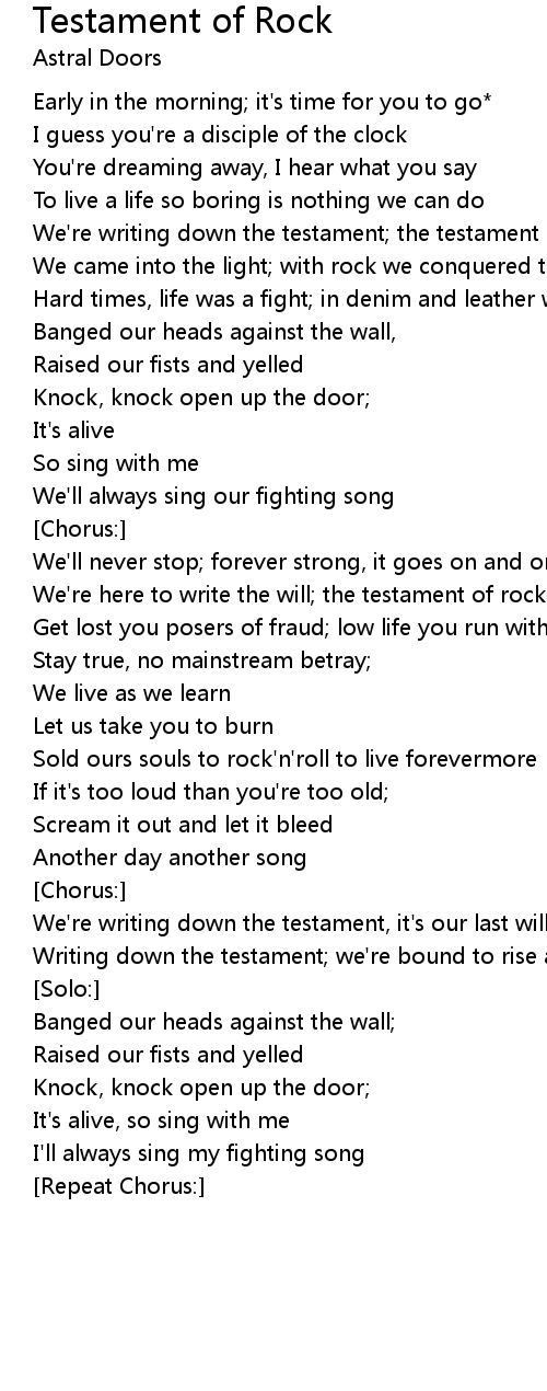 We're writing down the testament; the testament of rock |