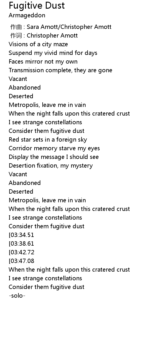 | [03:17.16] | When the night falls upon this cratered crust |