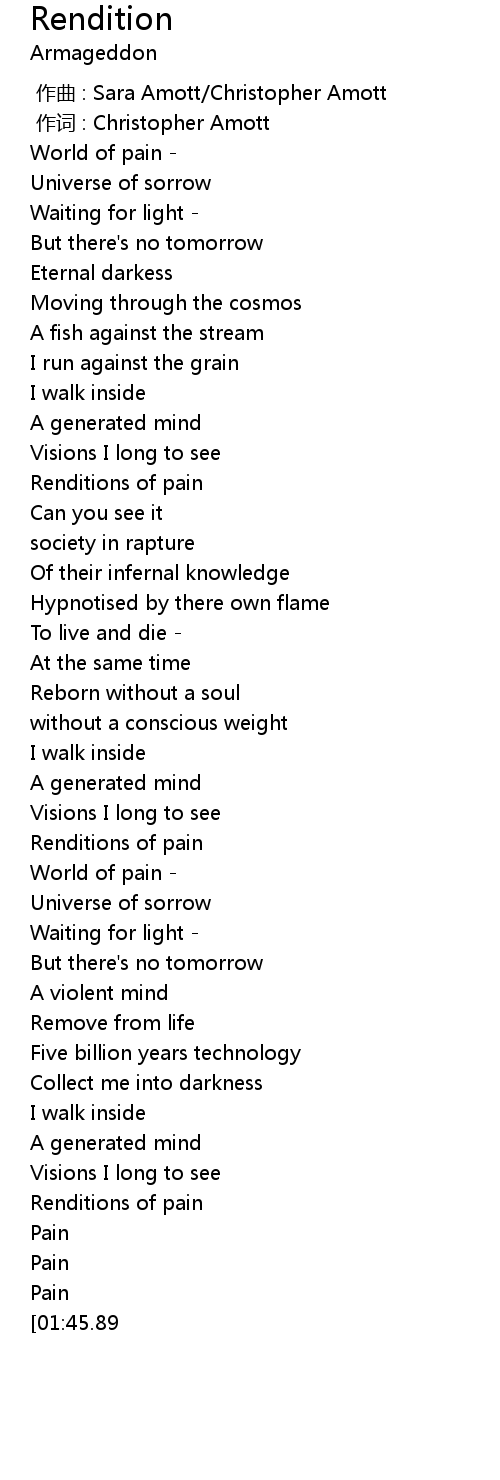 | [01:41.67] | Renditions of pain |