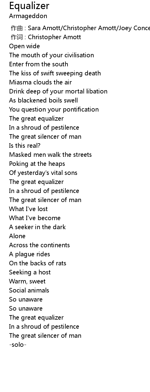 | [00:00.000] | 作曲 : Sara Amott/Christopher Amott/Joey Concepcion |