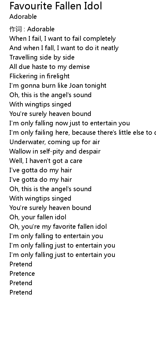 | Oh, you' re my favorite fallen idol | |