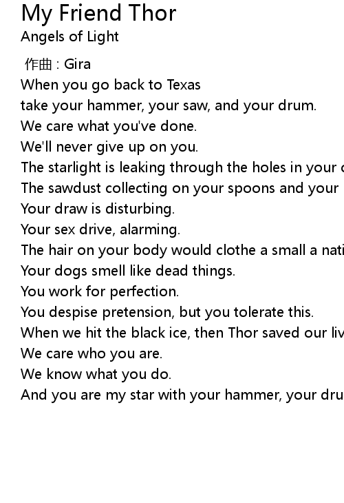 | [01:51.90] | And you are my star with your hammer, your drum, and your saw. |