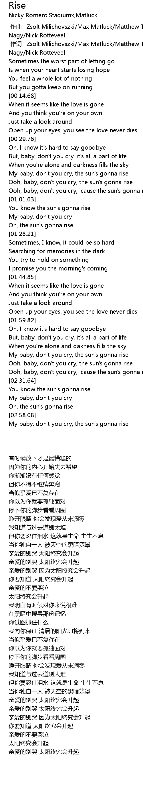| [02:23.70] | Ooh, baby, don' t you cry, ' cause the sun' s gonna rise |