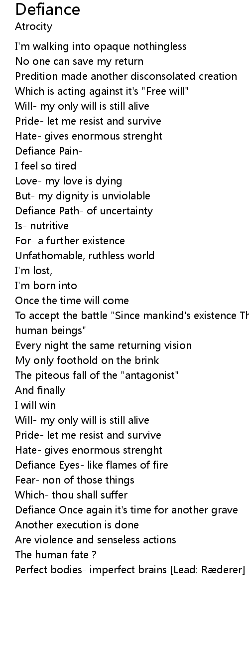 | To accept the battle "Since mankind's existence There's an endless war Between human beings" | |