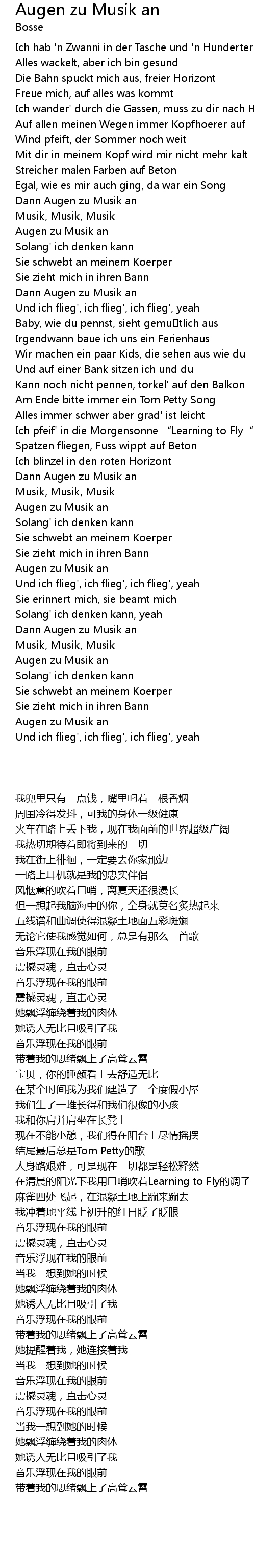 | [01:13.314] | Ich pfeif' in die Morgensonne " Learning to Fly" |