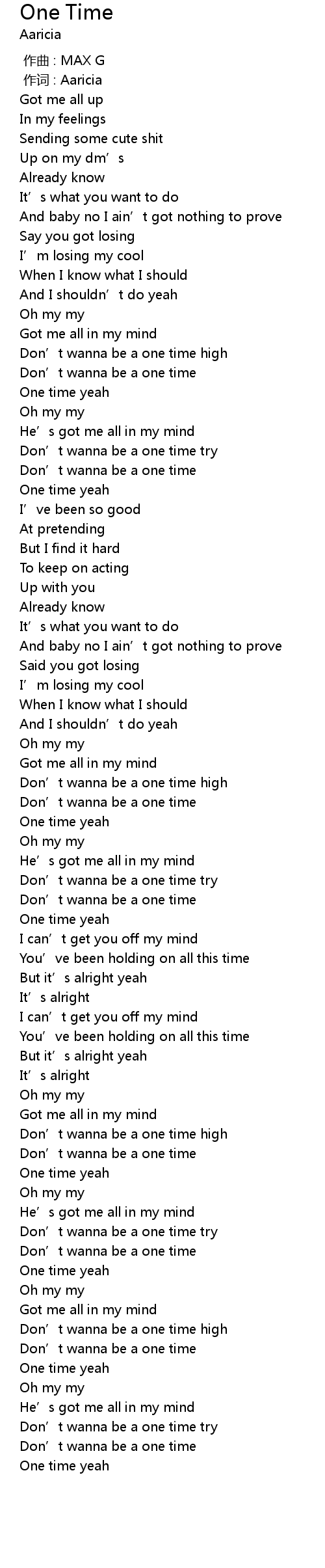 | [00:47.57] | Don’t wanna be a one time high |