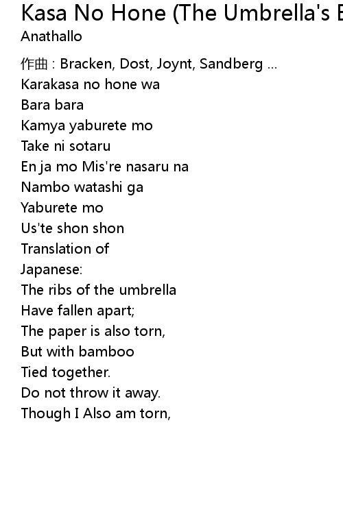| Song | Kasa No Hone (The Umbrella's Bones) |
