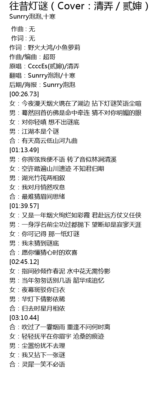 | [02:30.47] | 女:你可记得 那一纸灯谜 |