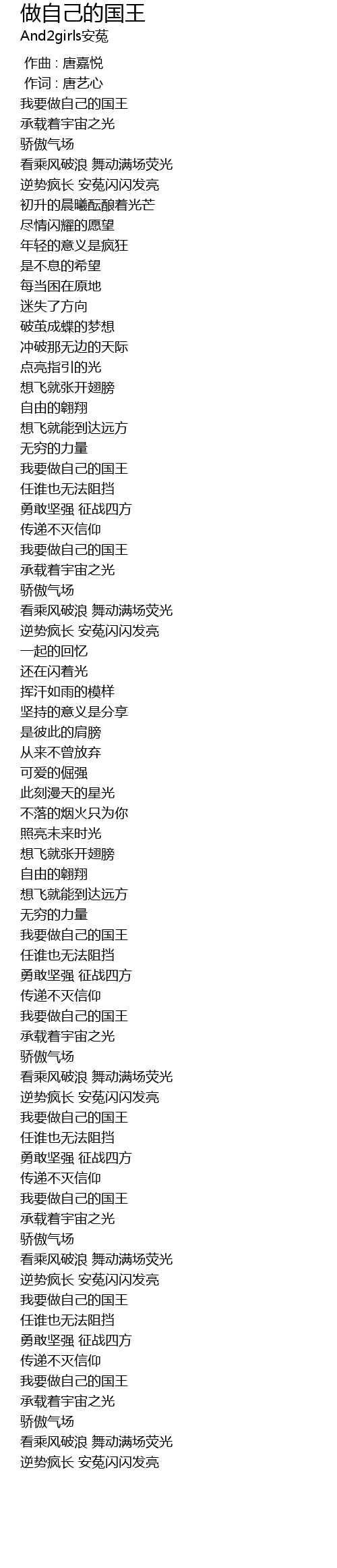 | [01:02.34] | wǒ yào zuò zì jǐ de guó wáng |