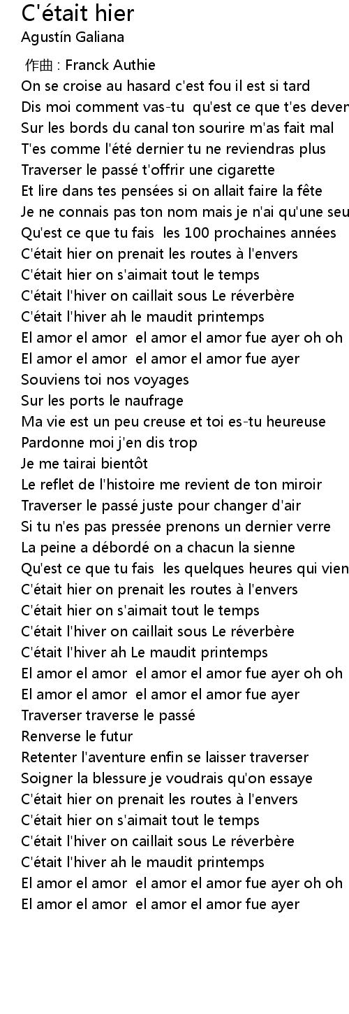 | [00:43.72] | C'e tait hier on s' aimait tout le temps |