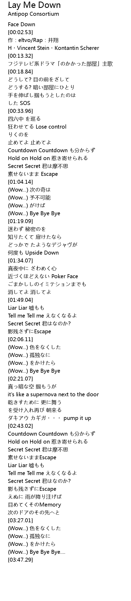 | [00:22.82] | どうする? 暗い部屋にひとり |